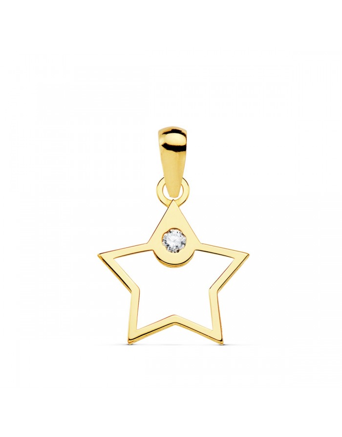 Colgante de Oro Amarillo 18K en forma de Estrella de la marca Joyas Armaan. La piedras que la adornan son Circonitas de color transparente. Es un colgante especialmente diseñado para niña/mujer.