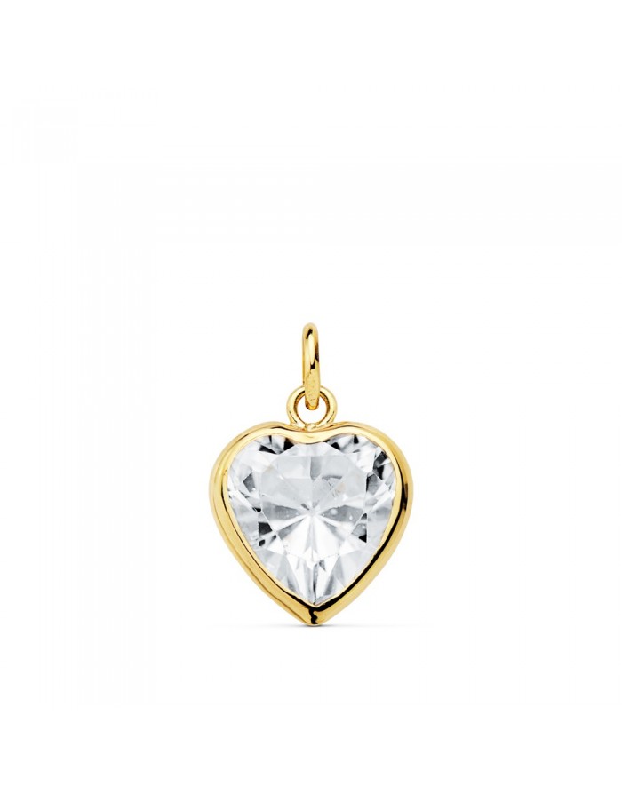 Colgante Corazón con Piedra en Talla Brillante montada en Oro 18kt -10 x 10mm