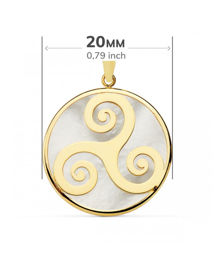 Colgante medallón Celta Trisquel con nácar en Oro de 18Kt -20mm