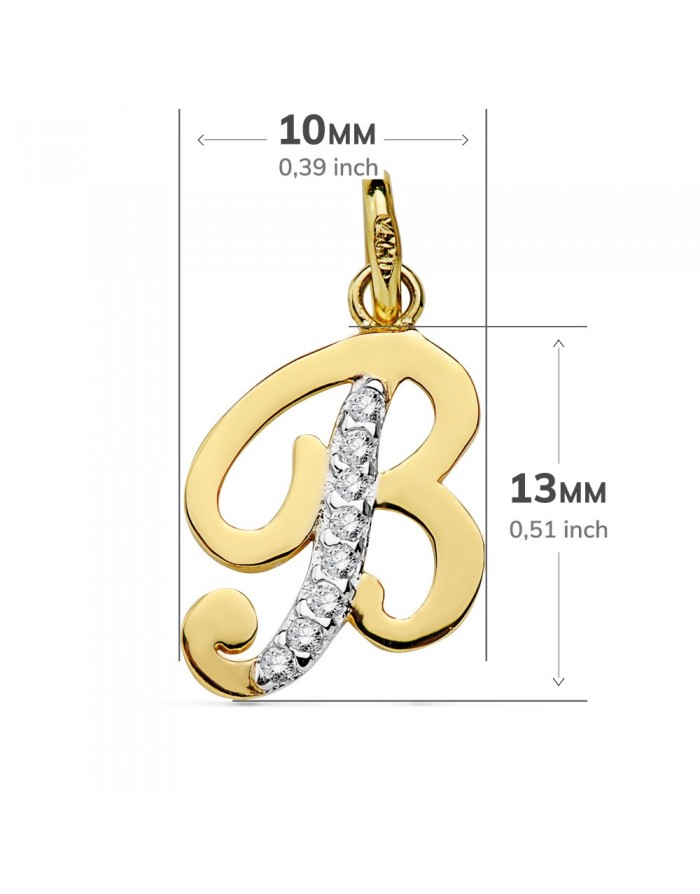 Colgante de Oro Amarillo 18K en forma de Inicial / letras de la marca Joyas Armaan. La piedras que la adornan son Circonitas de color Transparentes. Es un colgante especialmente diseñado para mujer.