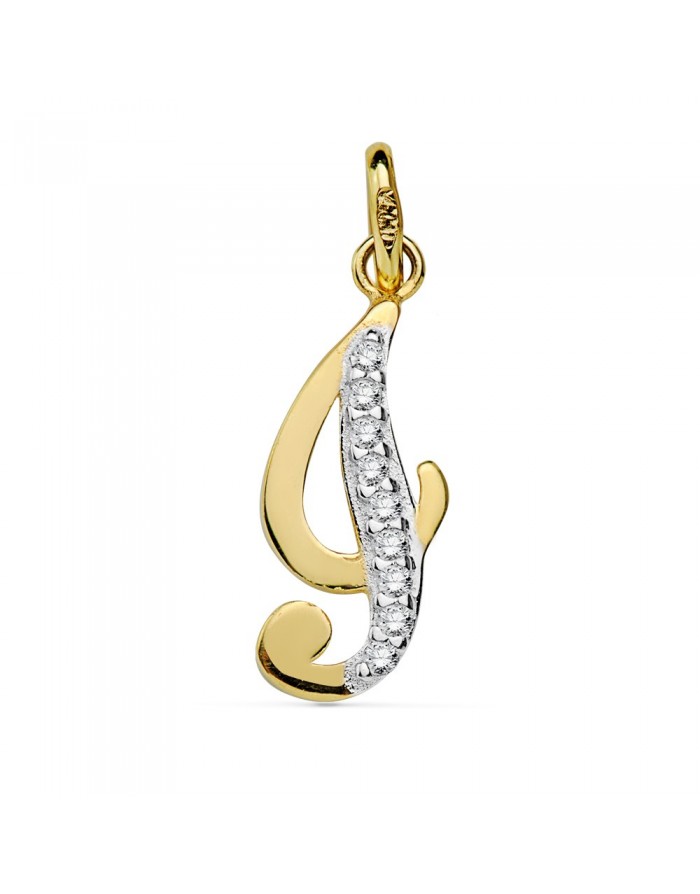 Colgante de Oro Amarillo 18K en forma de Inicial / letras de la marca Joyas Armaan. La piedras que la adornan son Circonitas de color Transparentes. Es un colgante especialmente diseñado para mujer.