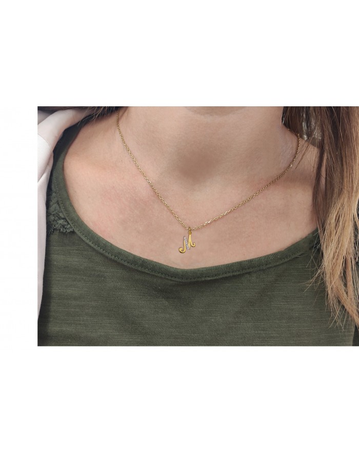 Colgante de Oro Amarillo 18K en forma de Inicial / letras de la marca Joyas Armaan. La piedras que la adornan son Circonitas de color Transparentes. Es un colgante especialmente diseñado para mujer.