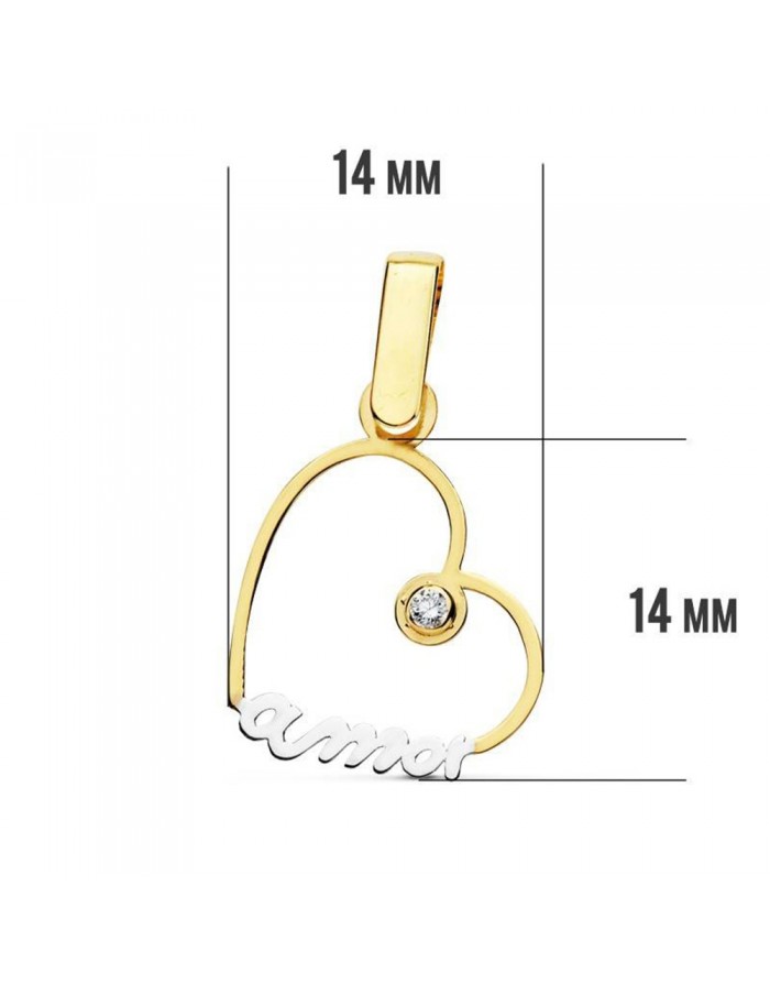 Colgante Amor con Circonita en Oro Amarillo y Blanco de 18kt -14 x14mm