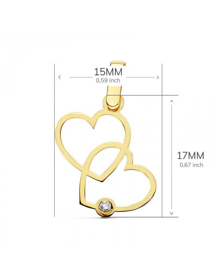 Colgante Doble Corazón con Circonita en Oro 18kt -17 x 15mm