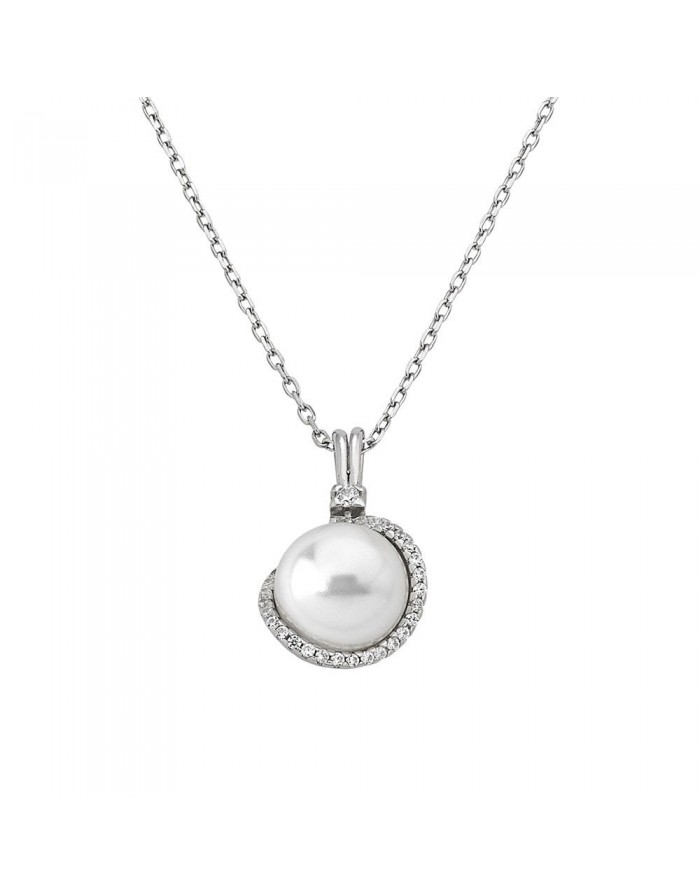 Colgante con perlas de Plata de ley de la marca Majorica. Este colgante tiene cierre de de mosquetón y 37 cm con extensión a 42 cm de largo. Además, esta pieza de joyería tiene una perla redonda de color blanca y un diámetro de 12 mm. Es un colgante especialmente diseñado para mujer.