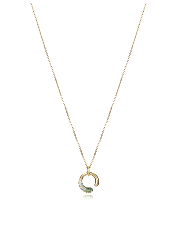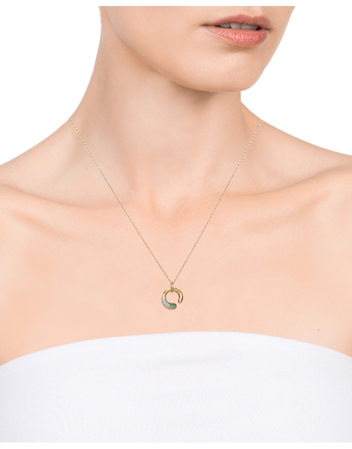 Collar Elegant de plata de ley con baño de oro , colgante de aro abierto con circonitas verdes, azules y blancas