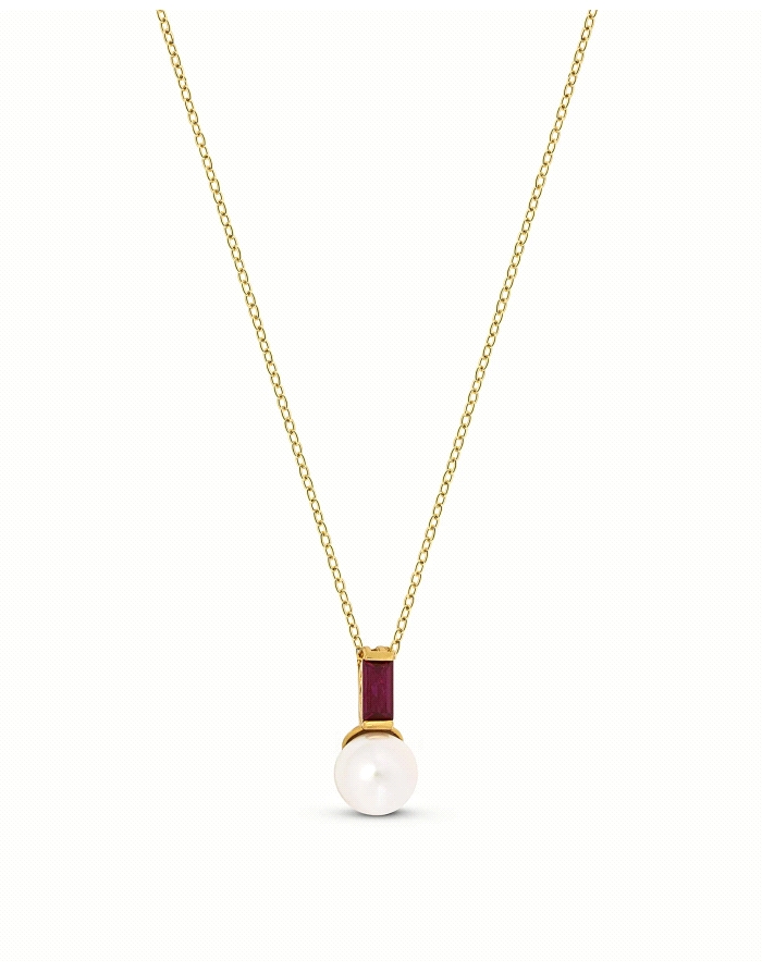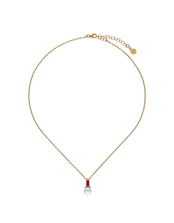 Collar Selene dorado de 42cm con perla y circonita rojo rubí