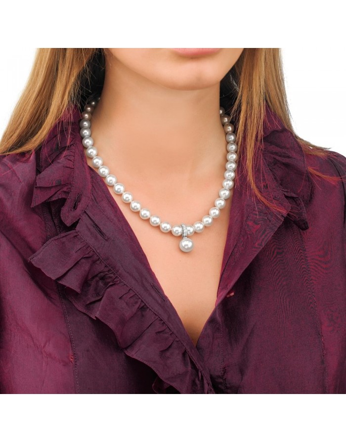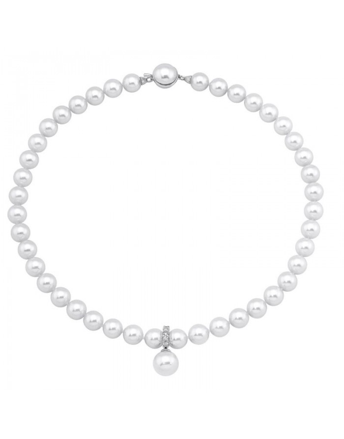 Colgante con perlas de Plata de ley de la marca Majorica. Este colgante tiene cierre de de broche y 45 cm de largo. Además, esta pieza de joyería tiene una perla redonda de color blanca y un diámetro de 10 mm. Es un colgante especialmente diseñado para mujer.
