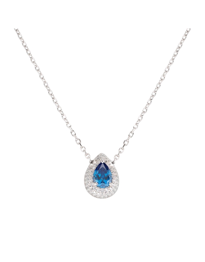 Gargantilla de Plata Rodiada con Zafiro Sintetico y Circonitas
