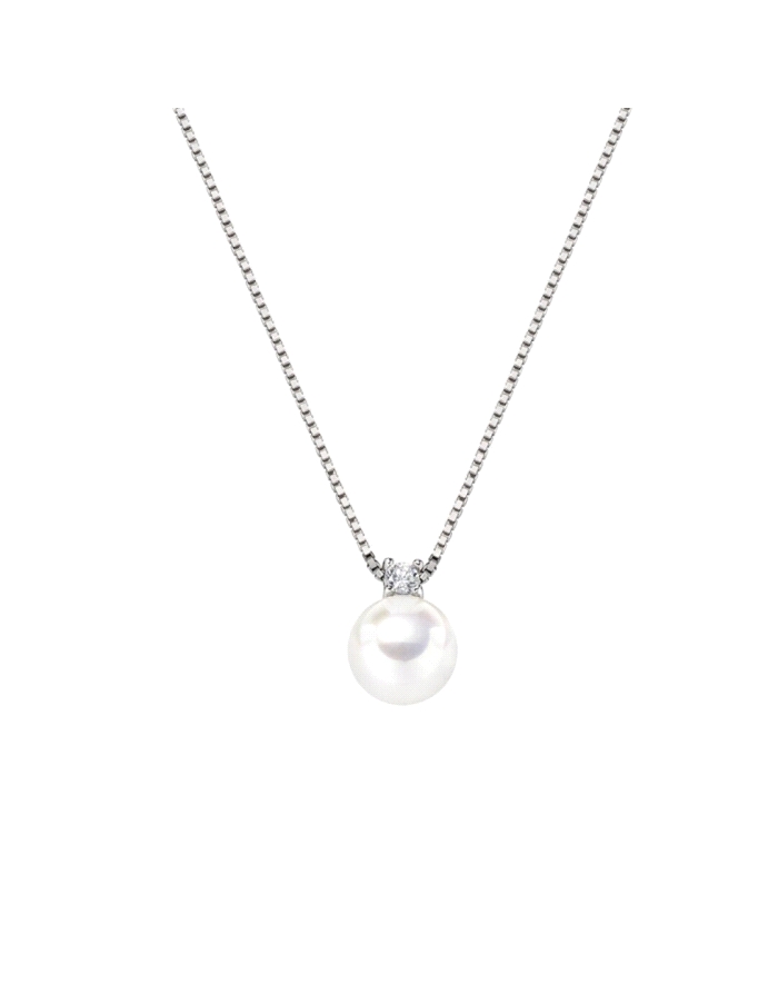 Gargantilla de Plata Rodiada con Perla y Circonitas