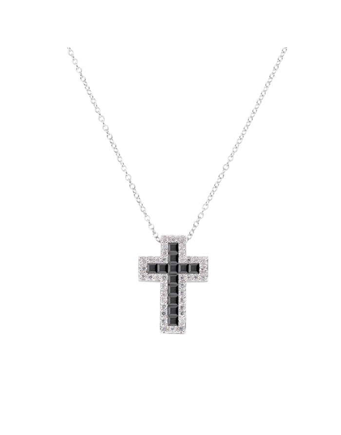 Collar Amén Plata Cruz y Circonitas Negras y Blancas