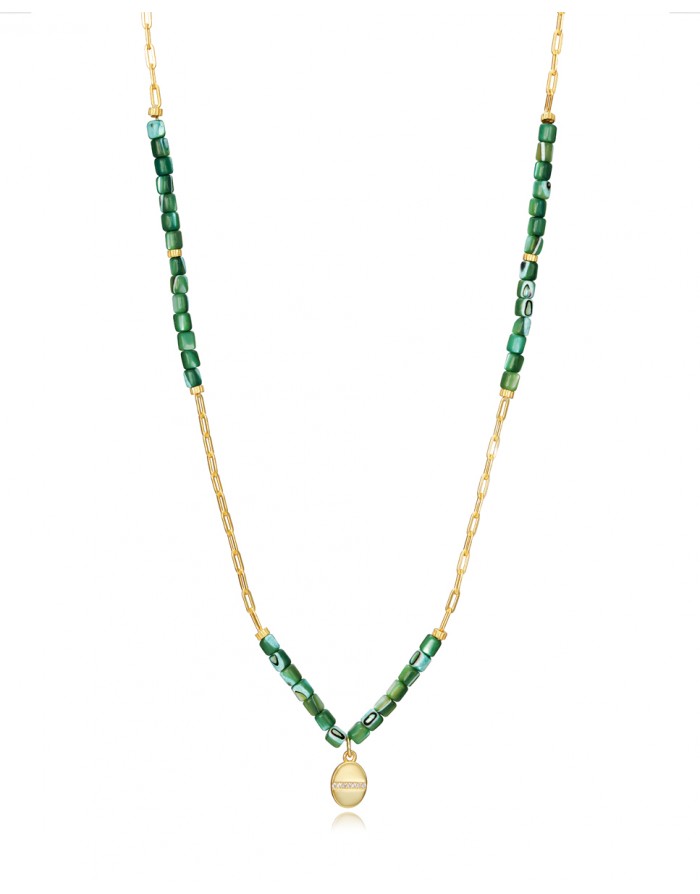 Collar de Plata Dorada con cadena y cuentas de Nácar verde y circonitas