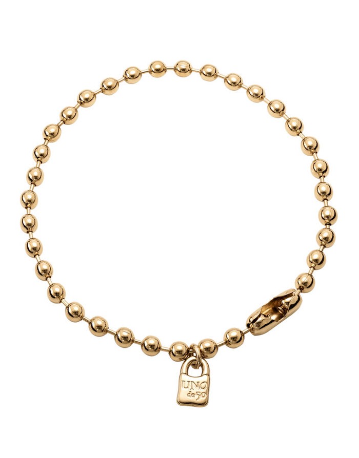 Collar hecho en metal con baño de oro de la marca UNOde50, el largo de la pieza es de 47,5 cm.