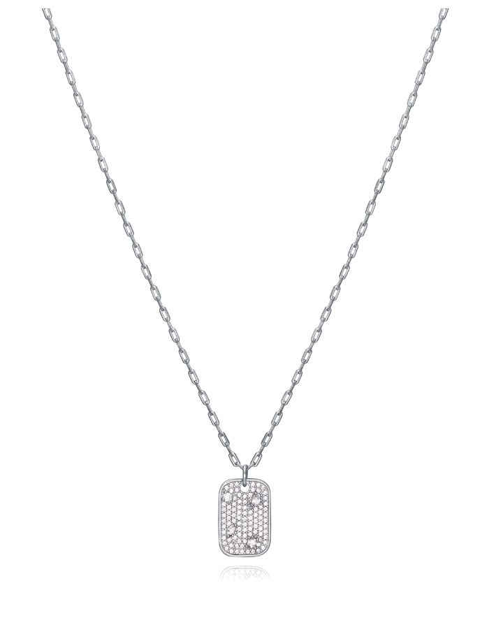 Collar Elegant de plata de ley con baño de rodio y placa colgante con circonitas blancas