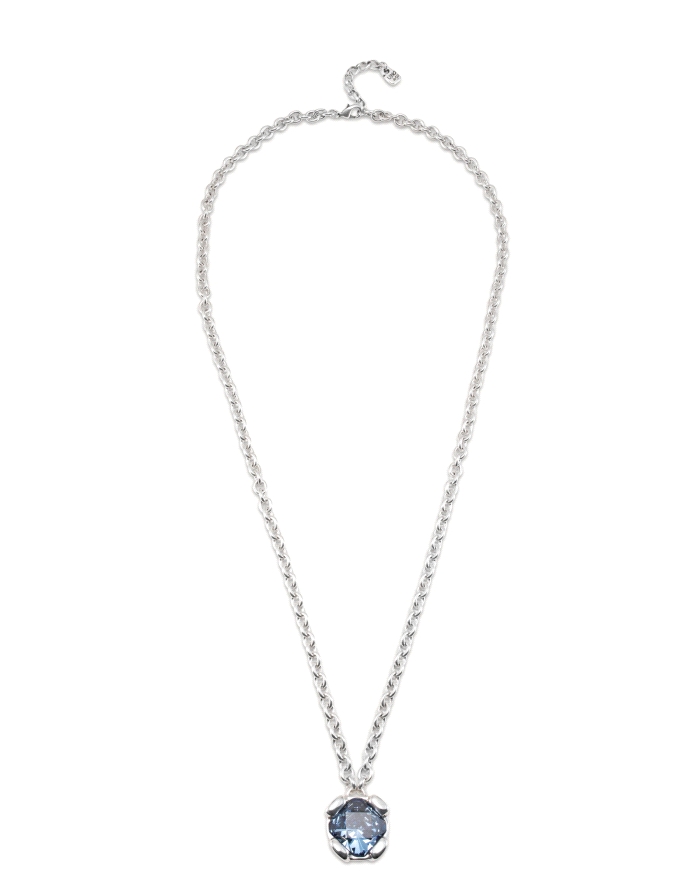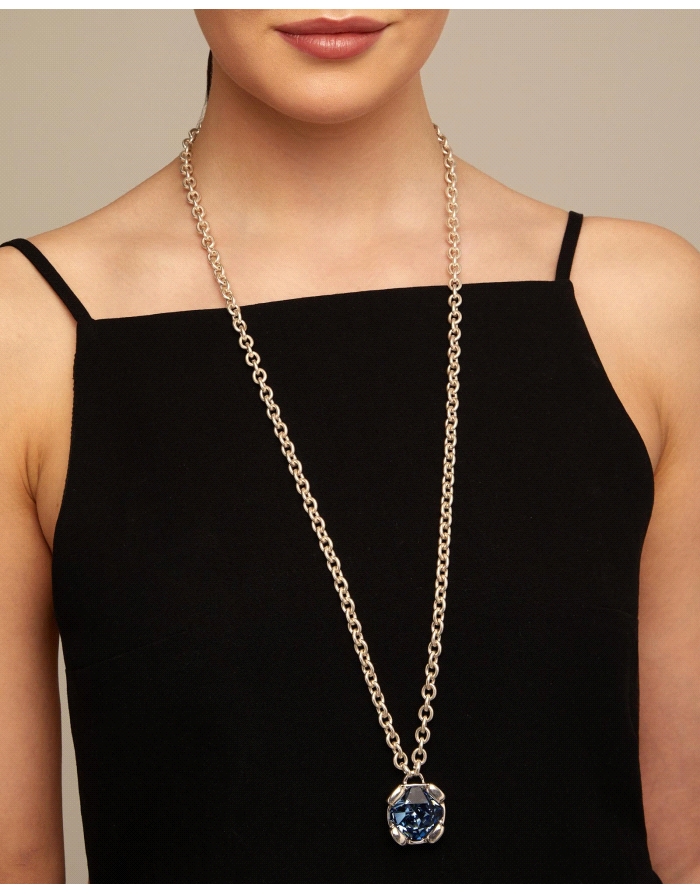 Collar largo bañado en plata de ley con cristal azul