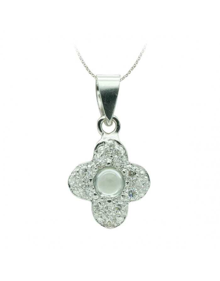 Colgante de Oro Blanco 18K en forma de Cruz de la marca Joyas Armaan. La piedras que la adornan son Circonitas de color Transparentes. Es un colgante especialmente diseñado para mujer.