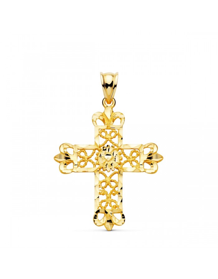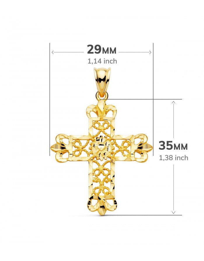 Cruz con Filigrana en Oro de 18KT Tallada-35 x 29mm