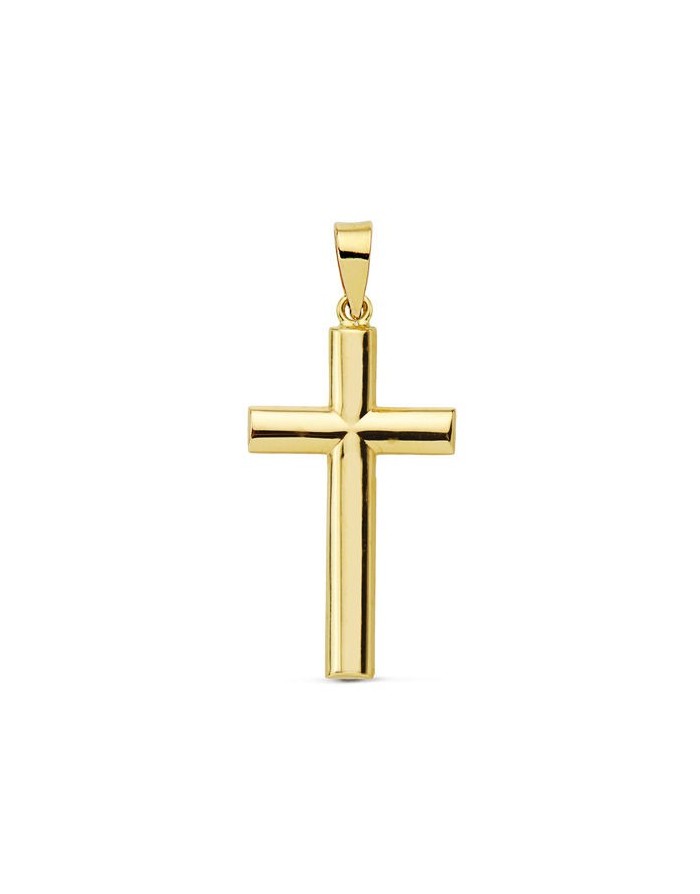Cruz Lisa de Oro Amarillo 18K con un acabado Brillo de la marca Joyas Armaan. Este producto tiene unas dimensiones de 25x15mm .