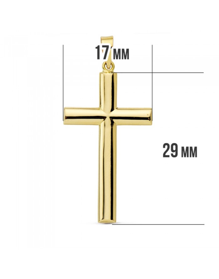 Cruz Lisa de Oro Amarillo 18K con un acabado Brillo de la marca Joyas Armaan. Este producto tiene unas dimensiones de 31 x 17mm .
