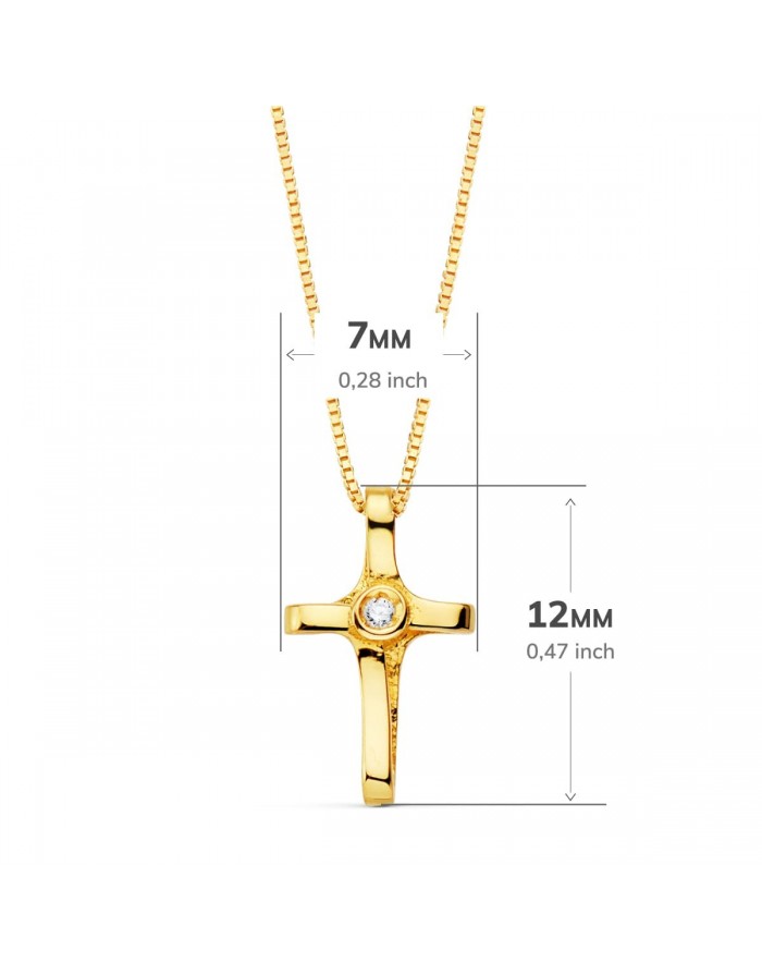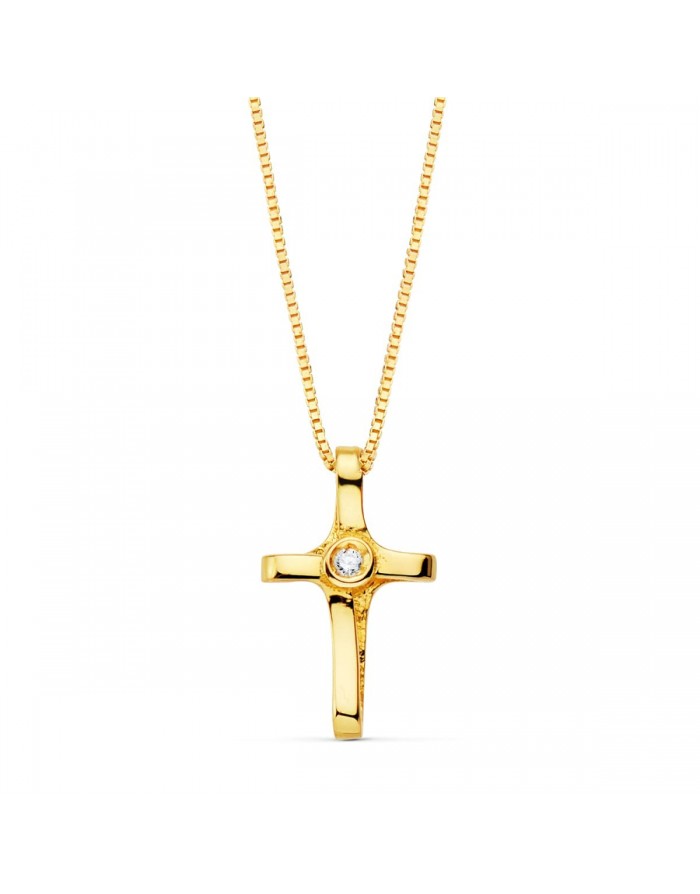 Gargantilla Cruz Latina con Diamante de 0,010Qts y Cadena de 45cm en Oro de 18Kt
