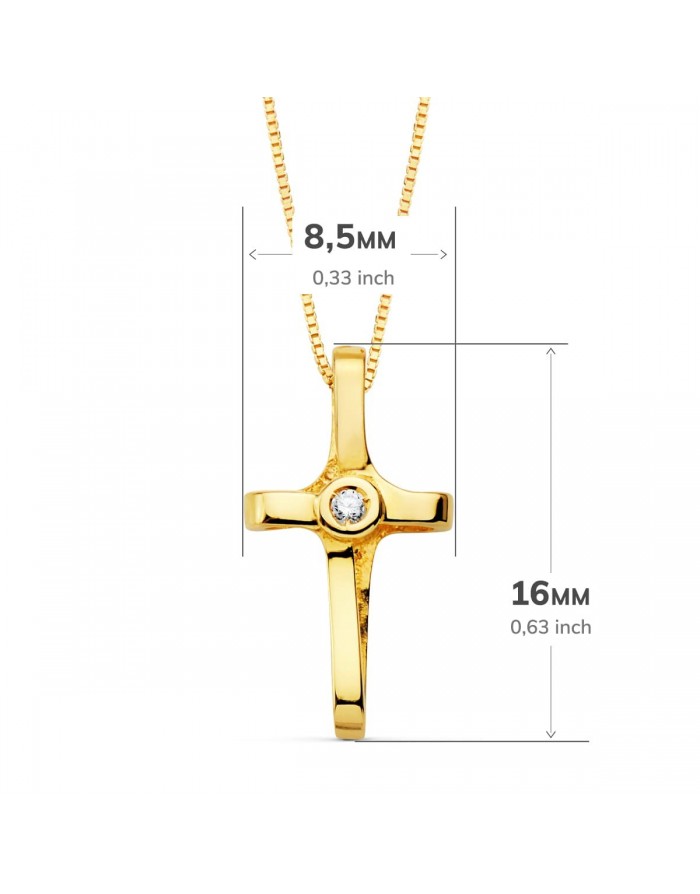 Gargantilla Oro de 18Kt Cruz con Diamante de 0,015QTS -16 x 8,5mm