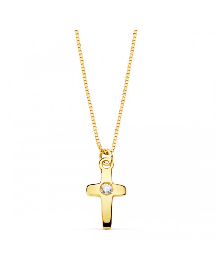 18K GARGANTILLA CRUZ 8 X 5MM. 1 DIAMANTE 0,015QT. CADENA VENECIANA 45CM. G-VS2