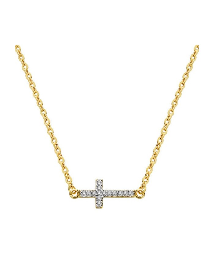 Gargantilla de Oro Amarillo 18KT en forma de Cruz de la marca Joyas Armaan. Esta Gargantilla tiene cierre de de reasa y 45cm de largo. La piedras que la adornan son Circonitas de color Transparentes. Es una gargantilla diseñada especialmente para mujer.