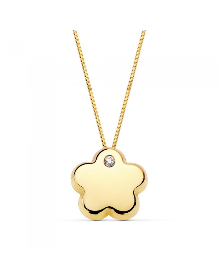 Colgante Flor Oro 18KT Circonita cadena veneciana