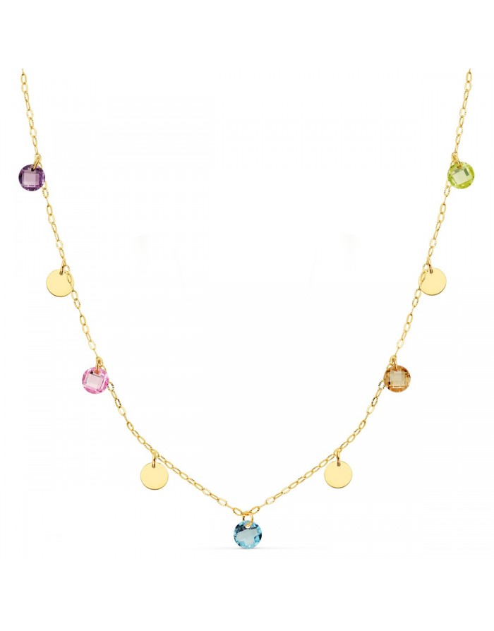Gargantilla Oro 18kt chapas y gemas de colores -5mm