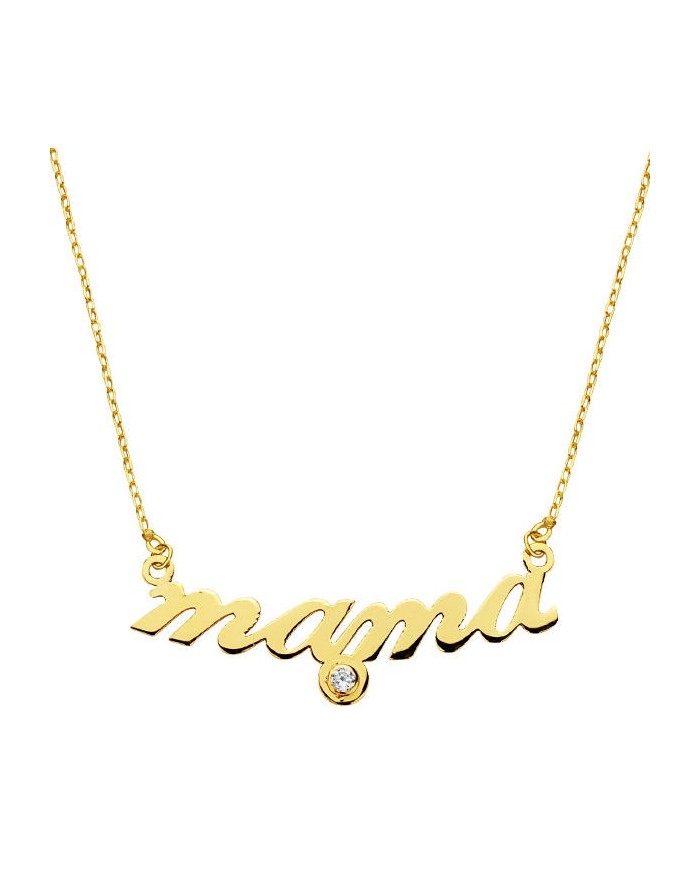 Gargantilla de Oro 18kt con palabra mamá y circonita central -45cm