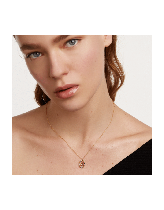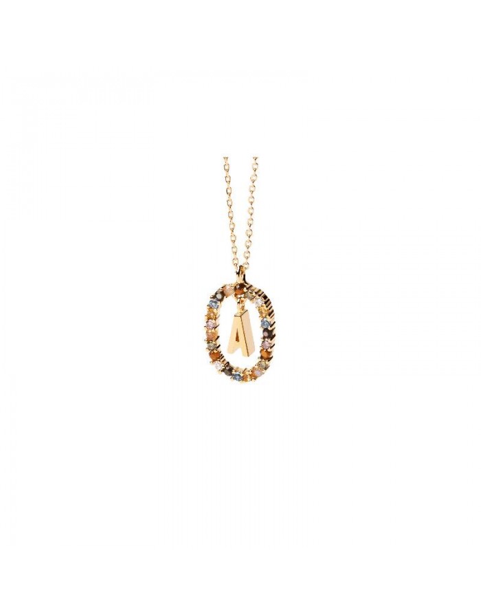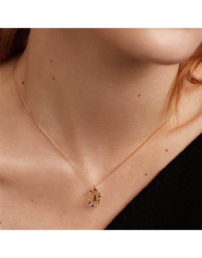 Gargantilla con inicial A de plata dorada con semipreciosas