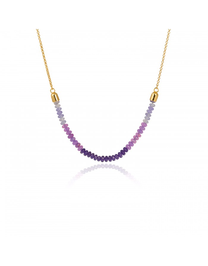 Collar hecho en Plata de ley y con acabado en Baño de Oro de 18Kt de la marca Luxenter con cierre de mosquetón. La piedra de este collar está hecha de amatista de color Este producto tiene una garantía internacional de 2 años