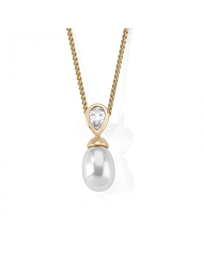 Colgante con perlas de Plata de ley de la marca Majorica. Este colgante tiene cierre de de mosquetón y 45 cm de largo. Además, esta pieza de joyería tiene una perla forma de lágrima de color blanco y un diámetro de 10/12 mm. Es un colgante especialmente diseñado para mujer.