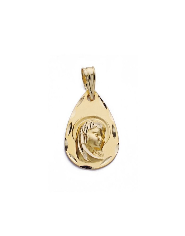 Medalla Virgen Niña Oro 18kt lágrima 19 x 12mm