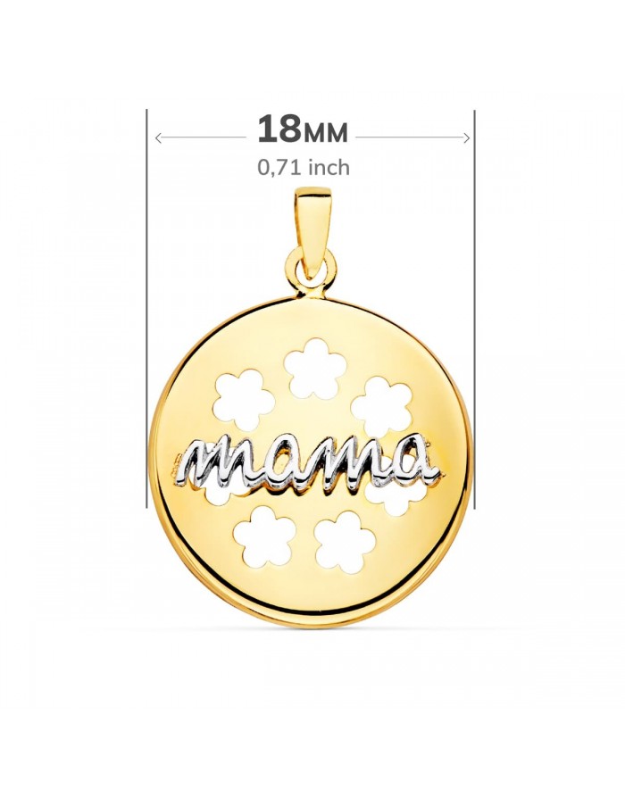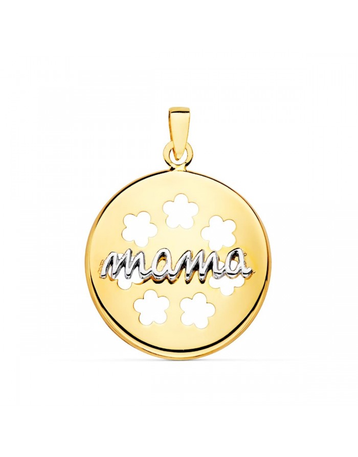 Colgante Mamá en Oro Blanco y Oro Amarillo de 18Kt Estrellas Caladas -18mm
