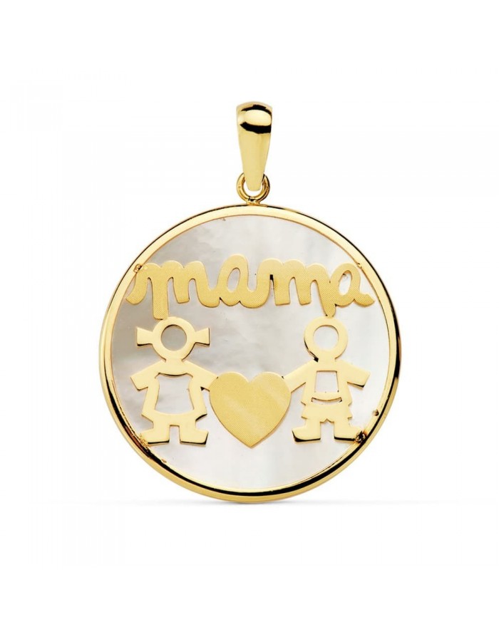 Colgante Mamá Niño Niña Oro 18KT Nácar -20mm