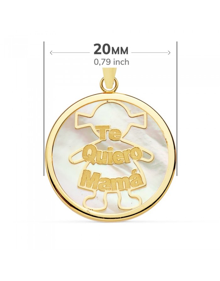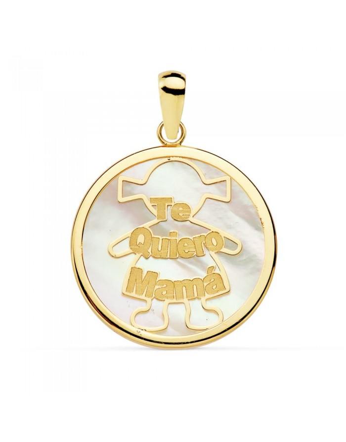 Colgante para Mamá en Oro de 18Kt y Nácar Letras y Niña -20mm
