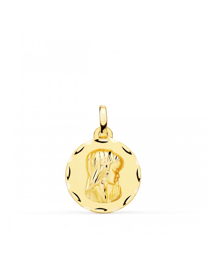 Medalla Comunión Virgen Niña Oro 18KT Matizada y Tallada -16mm