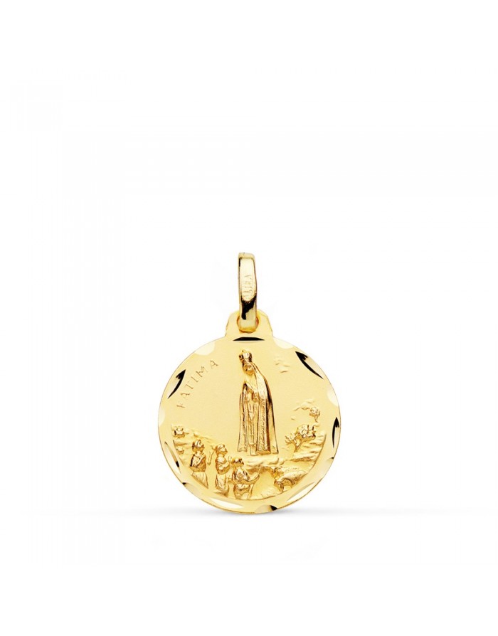 Medalla Virgen de Fátima en Oro de 18Kt Tallada -16mm