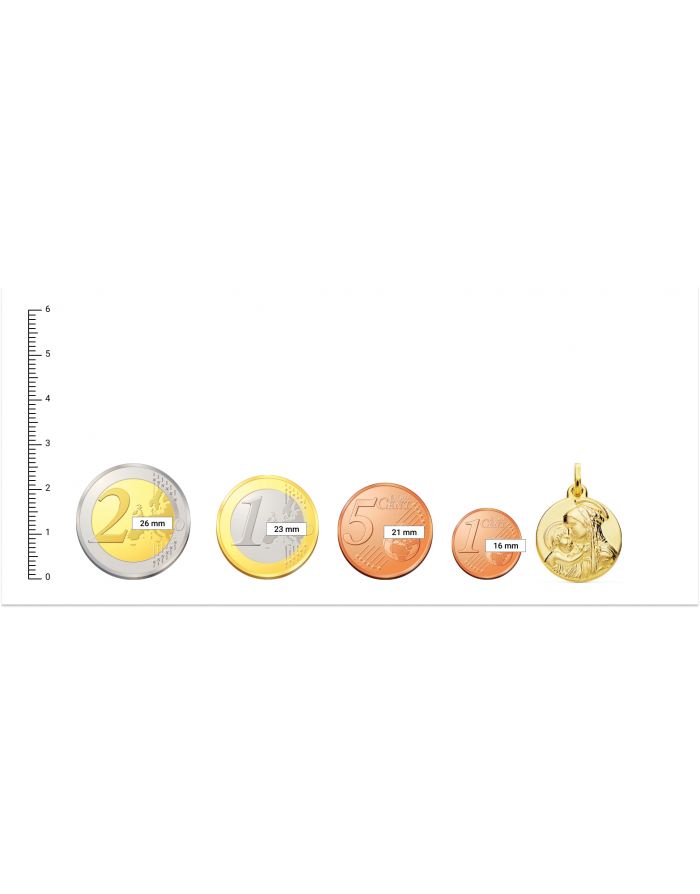 Medalla Virgen María con Niño Jesús Relieve Oro 18Kt -18mm