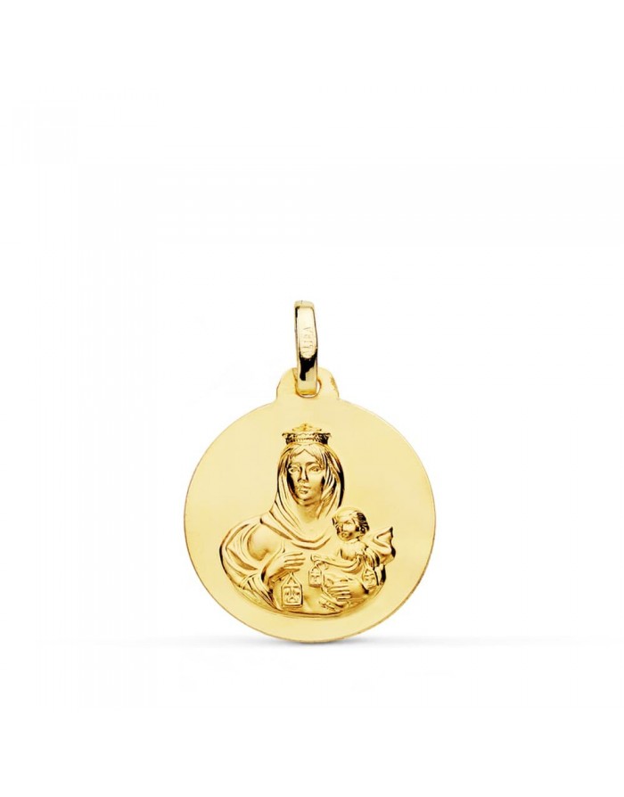 Medalla Lisa con Virgen del Carmen en Relieve hecha en Oro de 18Kt -16mm
