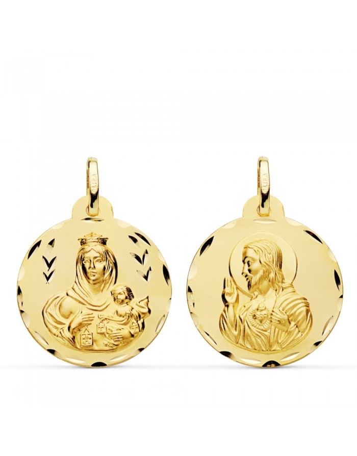 Escapulario Virgen del Carmen y Corazón de Jesús en Oro 9KT -22 mm