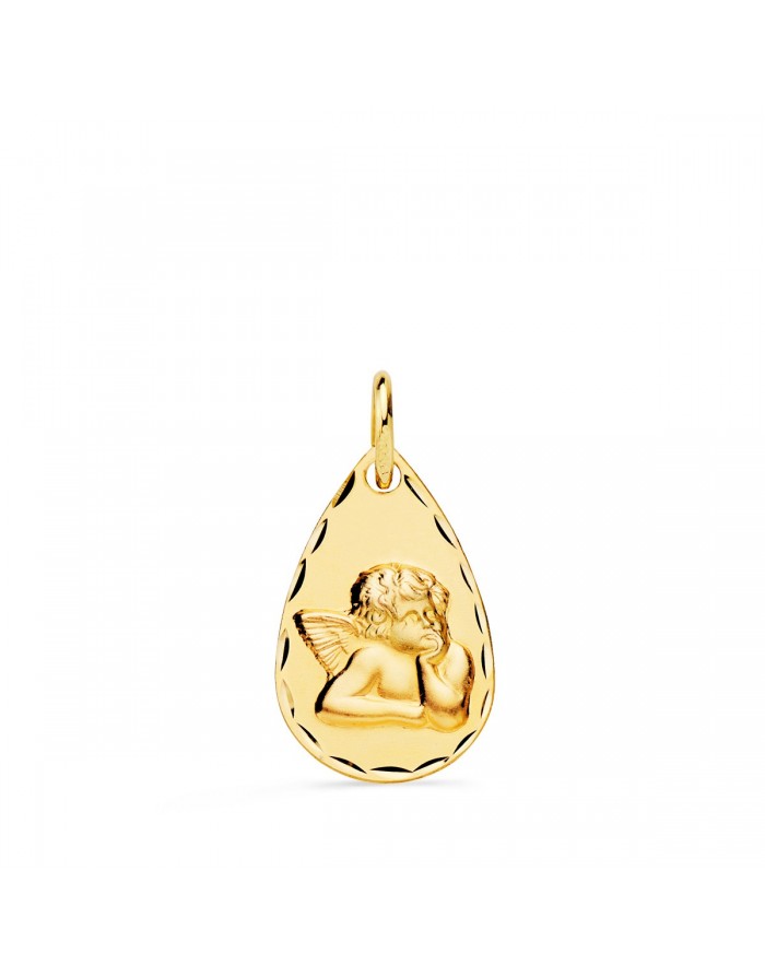 Medalla Ángel Burlón tallada forma de lágrima en Oro de 18Kt -19 x 11mm