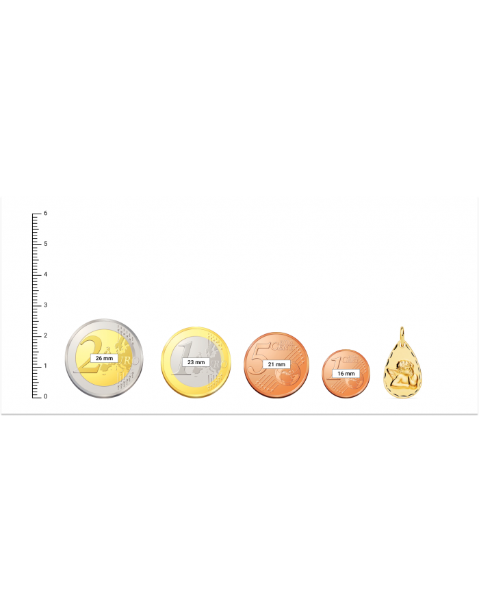 Medalla con figura de Ángel Burlón y forma de de lágrima en oro amarillo de 18 kilates (750 milésimas). La medalla tiene 19 mm de alto y 11 mm de ancho.