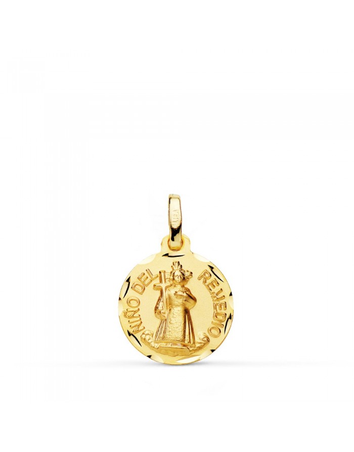 Medalla redonda en Oro de 18Kt con Niño del Remedio tallada -14mm