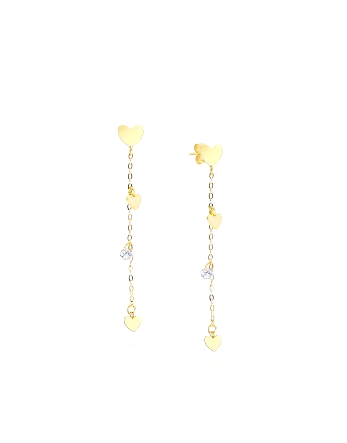 Pendientes Largos Oro 9KT Corazones y Circonita