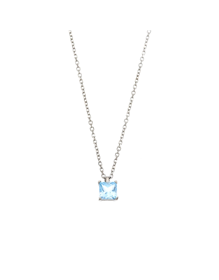 Gargantilla de Oro Blanco 9kt con Colgante Topacio Azul