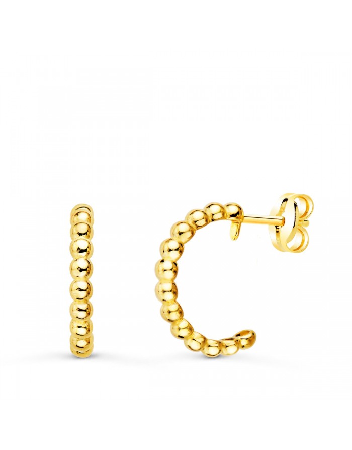 Pendientes de medio aro con bolas hechos en Oro 18Kt -14mm