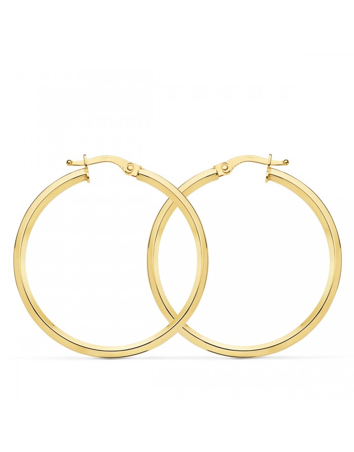 Pendientes Aros de Oro 18Kt redondos Rombo -33mm