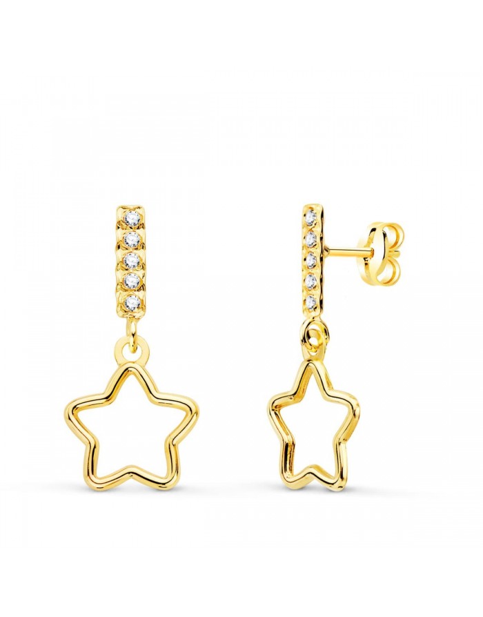 Pendientes Estrella y Circonitas en Oro de 18KT -17 x 8mm